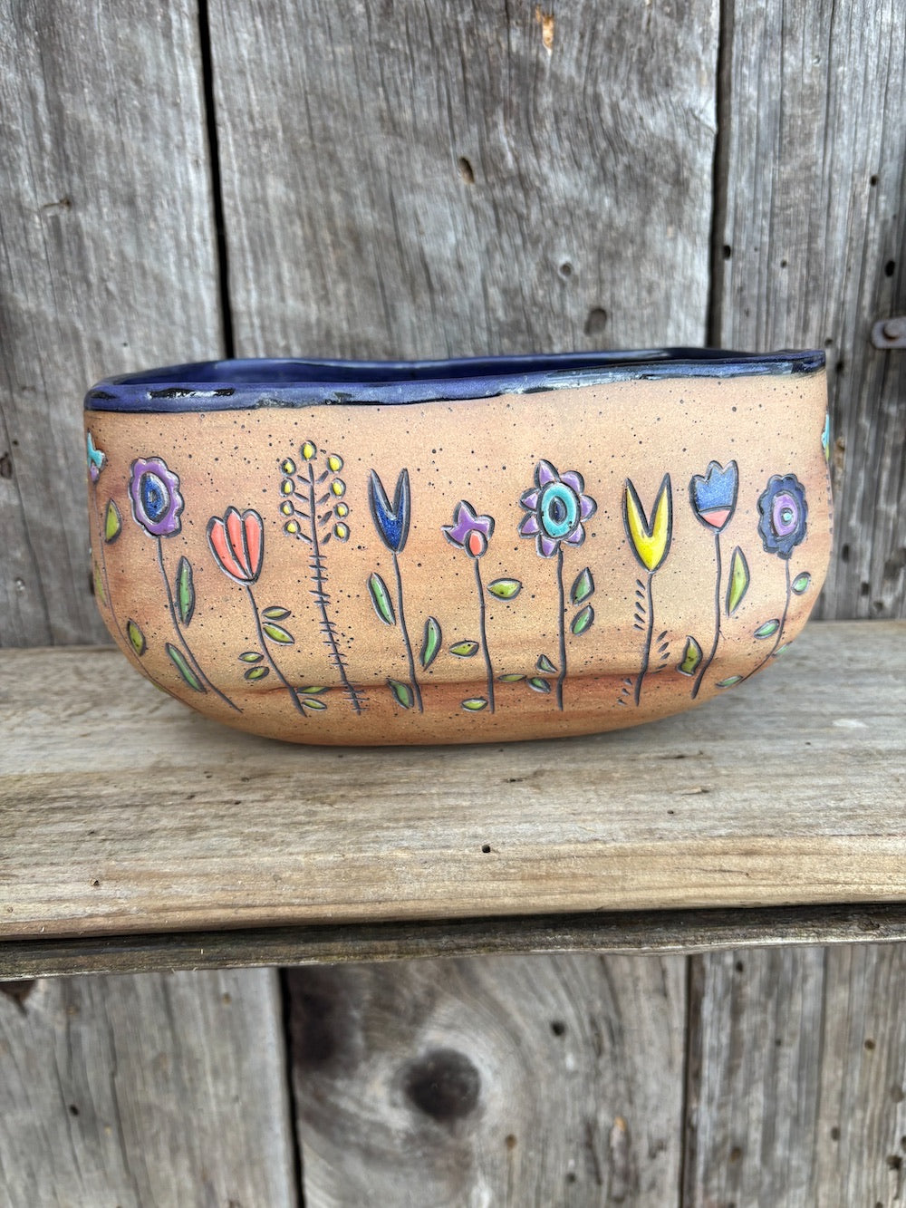 Hand built  meadow rectangular bowl. ( SALE - was $172)