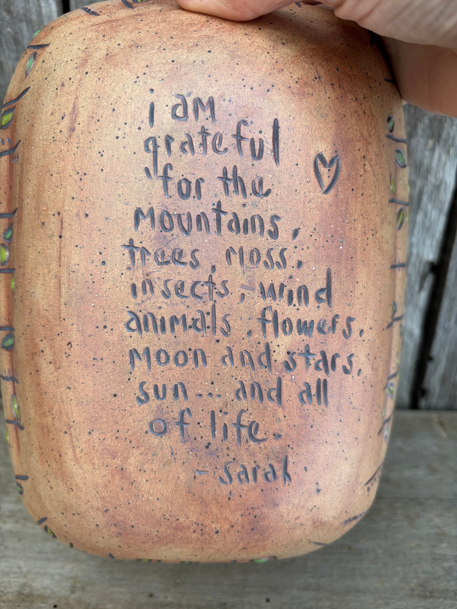 " I am grateful for mountains, trees..."
